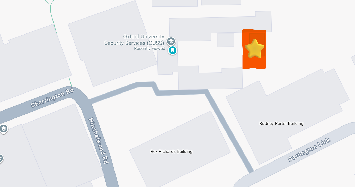 We are in the old observatory building at the back of Oxford University Security Services (OUSS), OX1 3RQ, between the Henry Wellcome building and Rodney Porter building.